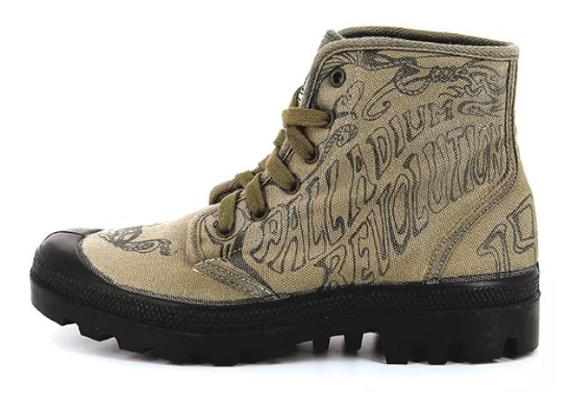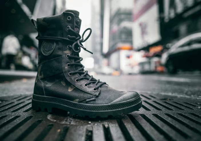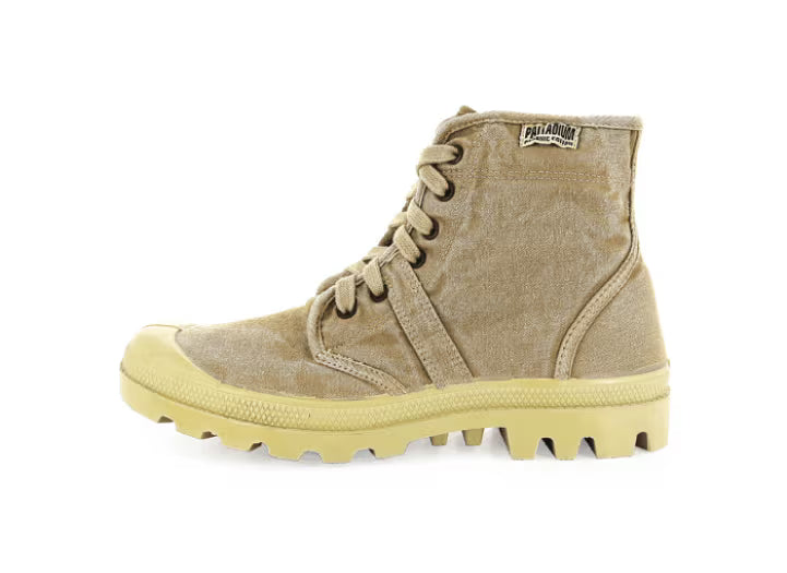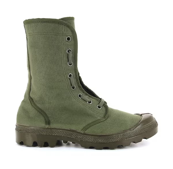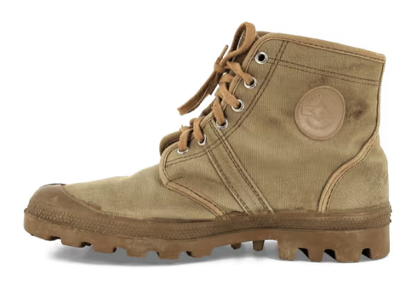 Palladium shoes accompanied the Legion's forces as they carried the banner for French values around the world. Why Palladium more than any other brand ? Because our boots are sturdy but light, water-resistant, and were the first ones made from canvas, the fastest fabric to dry out. If their design has become timeless, it's because it responds to a fundamental need for resistance-resistance to the elements, to wear and tear, to time and trends.