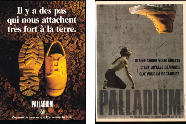 Shoes for the freedom generation. Palladium boots made their debut on the streets as the beatnik spirit inspired thousands of French young people to pound the pavement, while the Pallatennis sneaker proved its speed on the feet of protesters outfoxing the police.