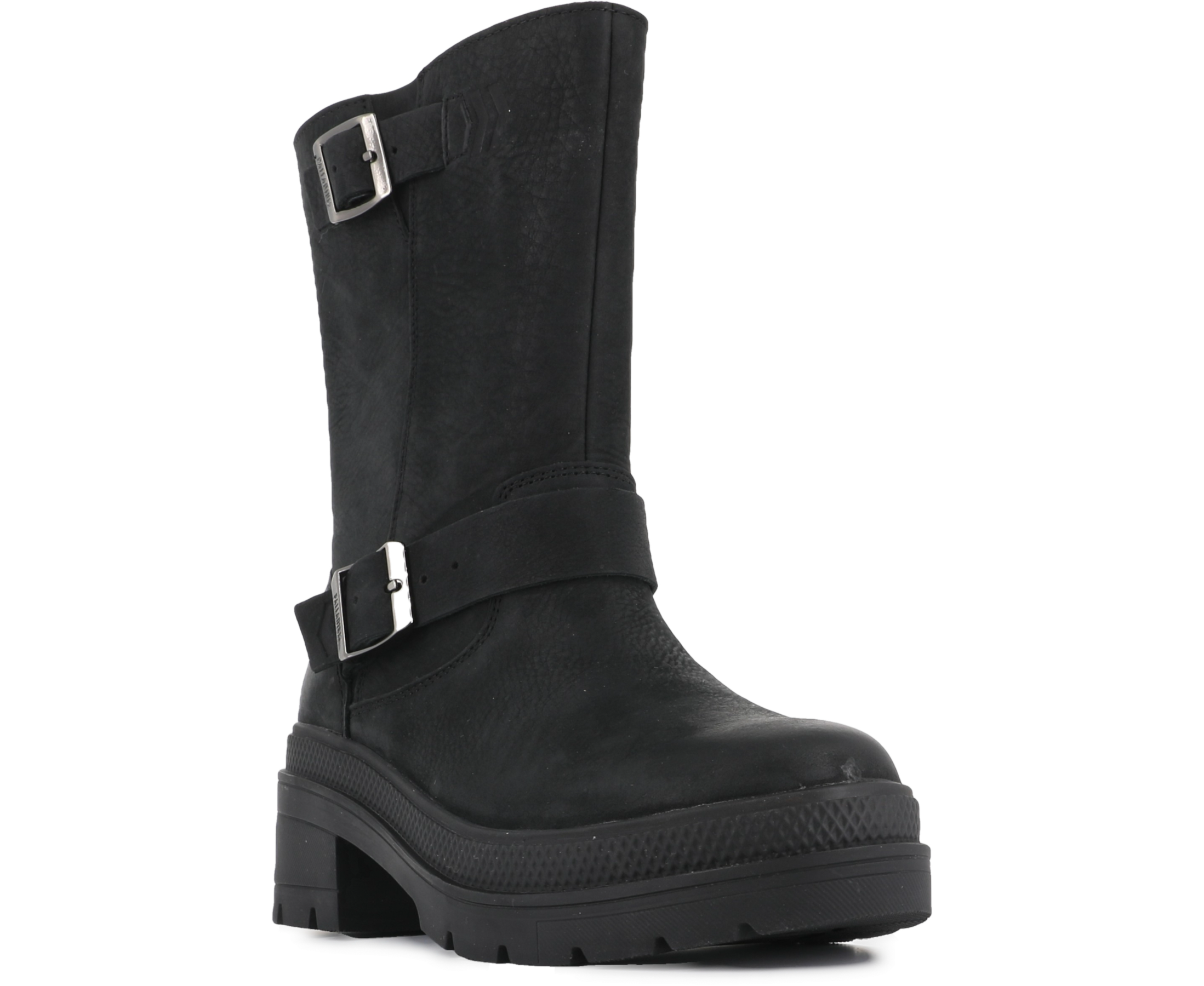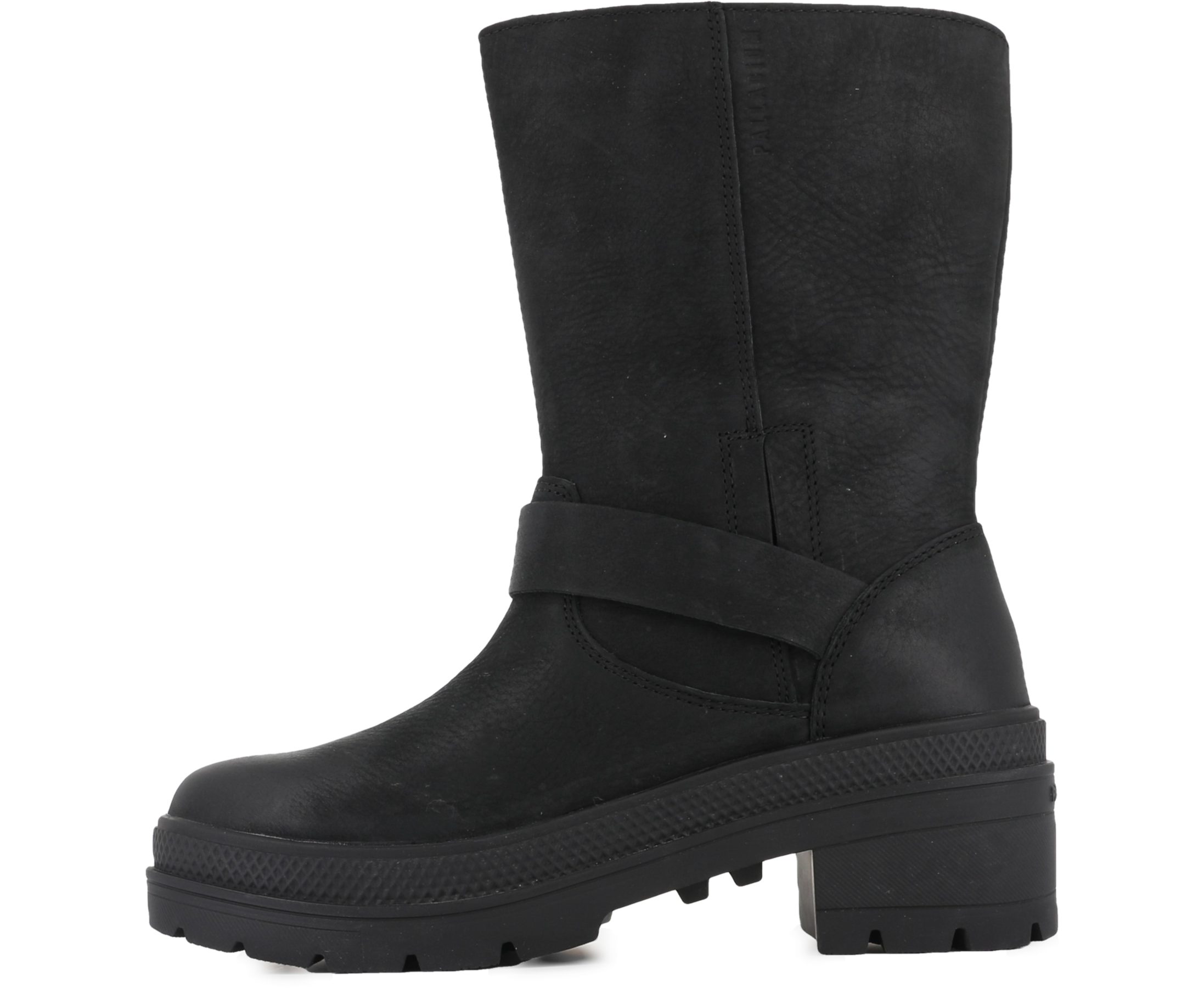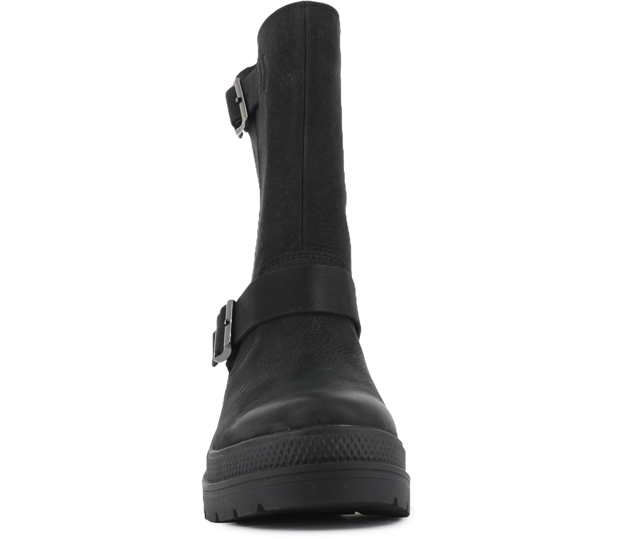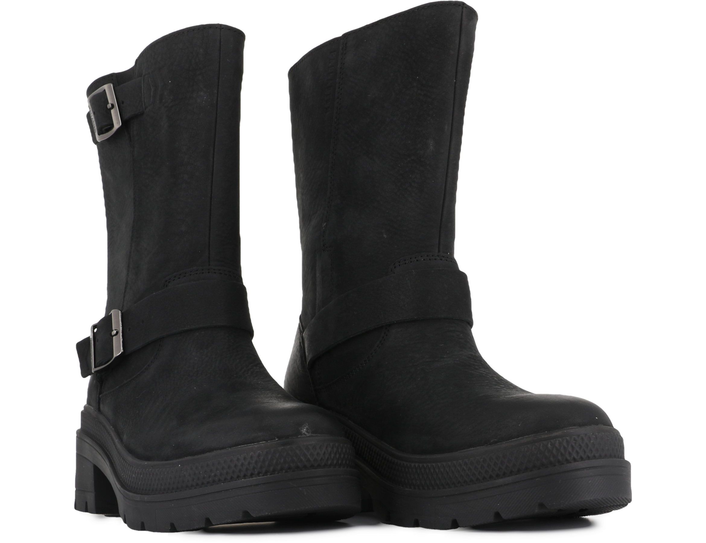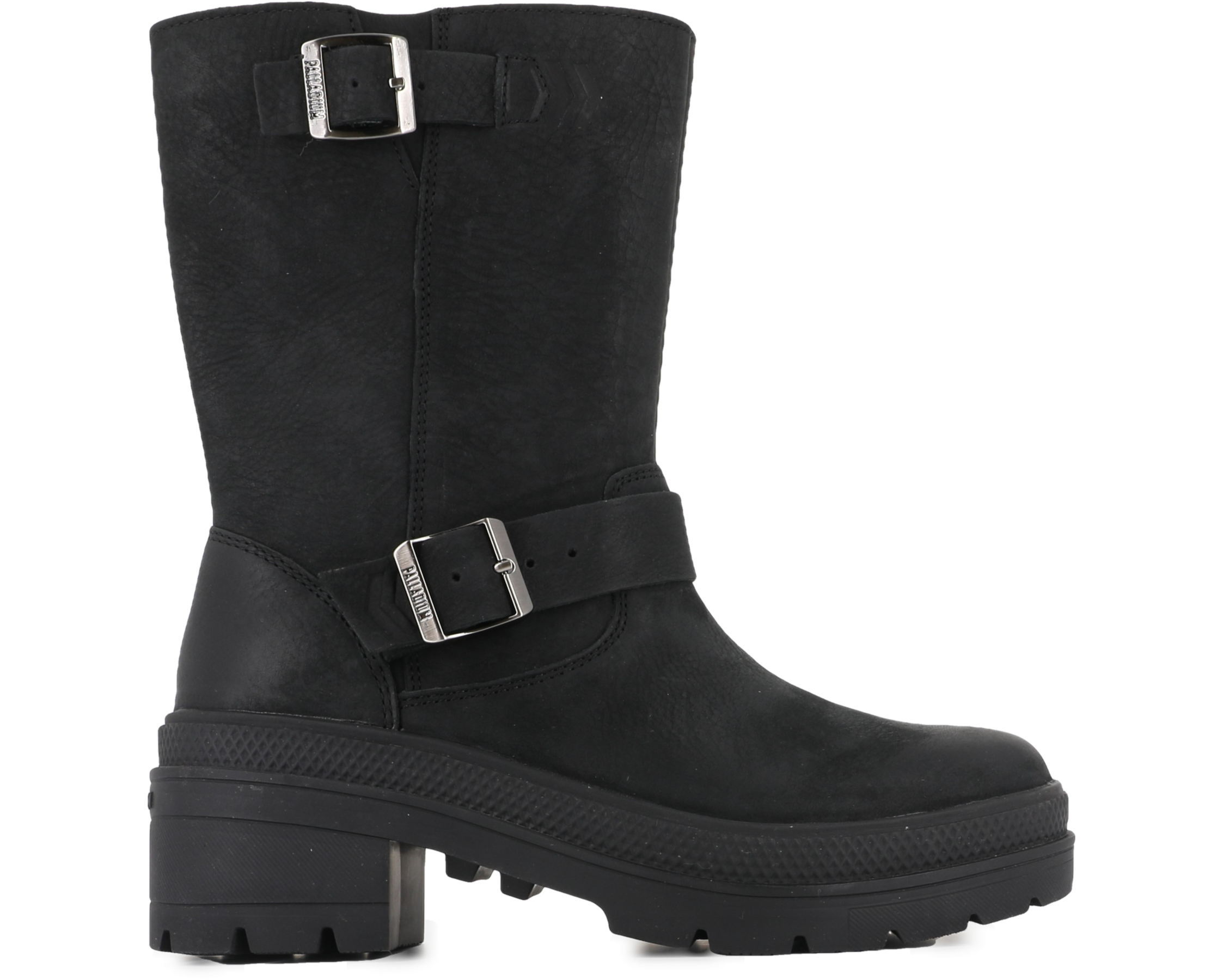 Introducing the PALLARISE ROADSTER, a bold high boot that blends biker attitude with refined elegance. Designed with a graceful heel and sleek feminine silhouette, it adds a confident lift to your step. Crafted from soft, rugged oily leather, this standout boot features adjustable logo buckles and embossed chevron details for a distinctive Palladium touch. The PALLARISE ROADSTER is the perfect fusion of urban edge and timeless French style.