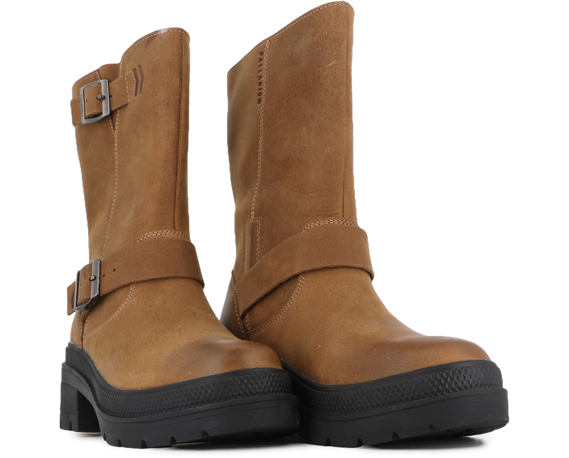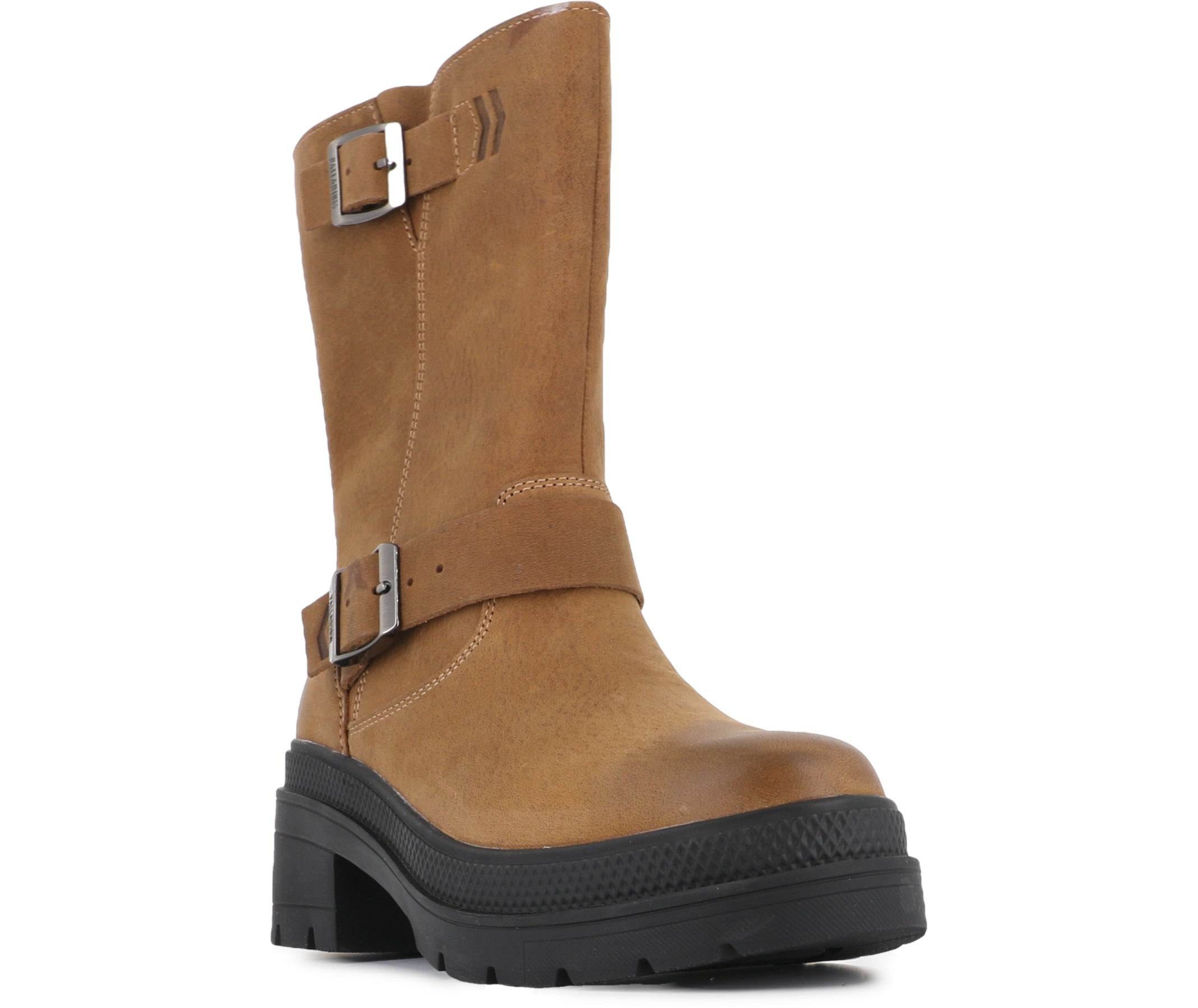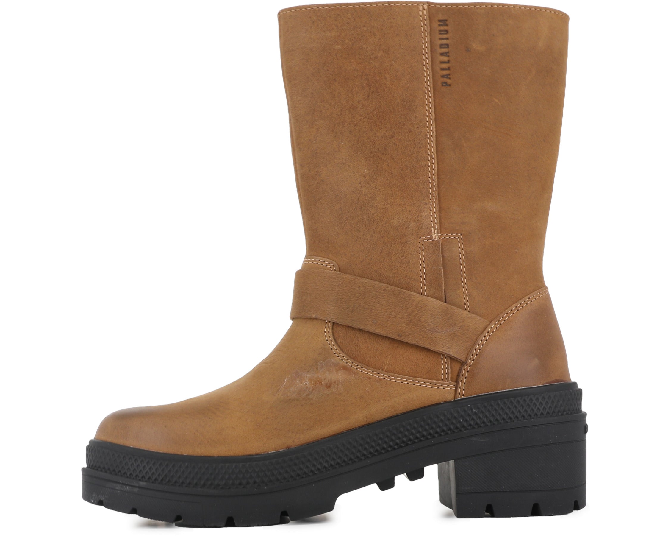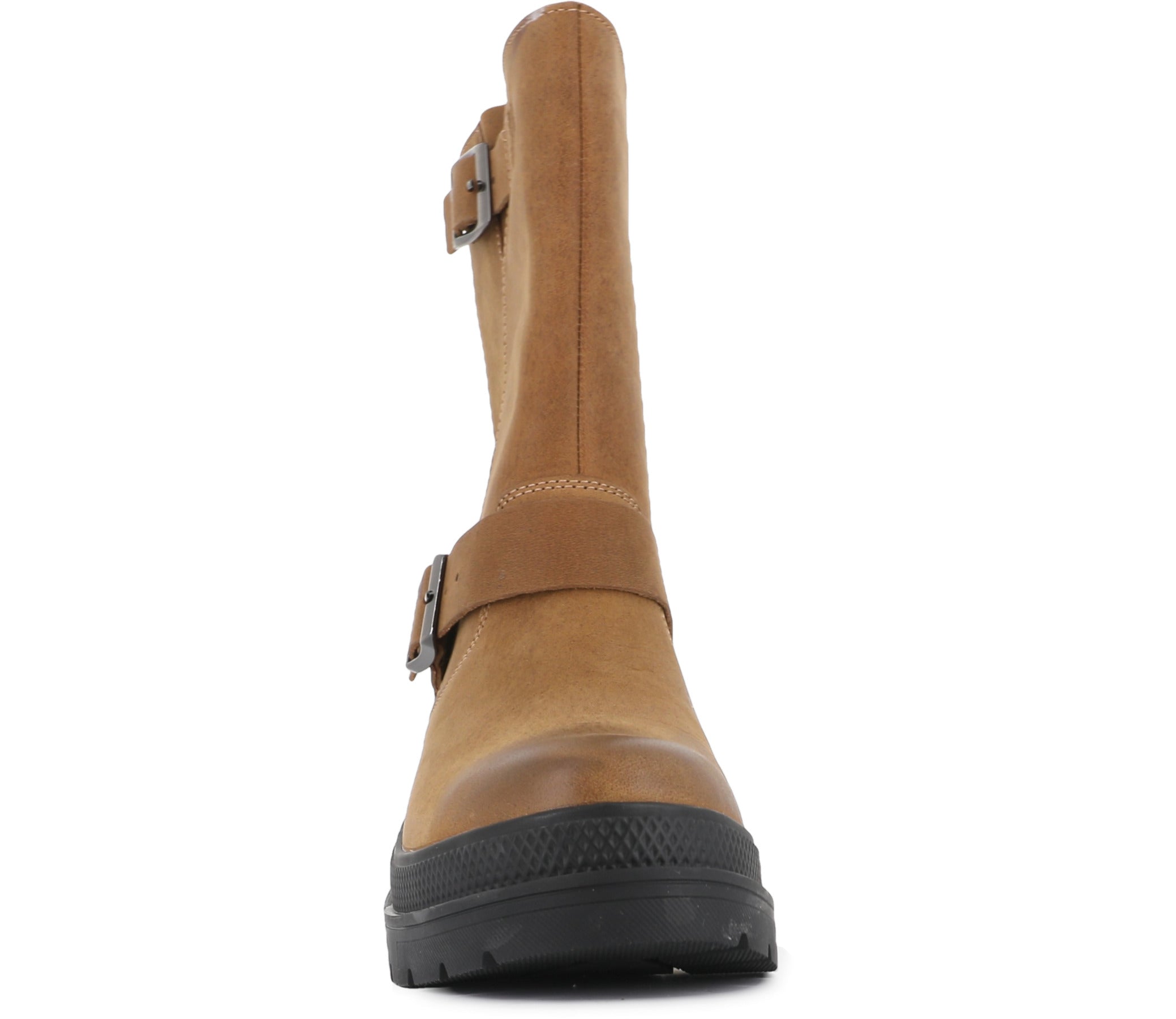 Introducing the PALLARISE ROADSTER, a bold high boot that blends biker attitude with refined elegance. Designed with a graceful heel and sleek feminine silhouette, it adds a confident lift to your step. Crafted from soft, rugged oily leather, this standout boot features adjustable logo buckles and embossed chevron details for a distinctive Palladium touch. The PALLARISE ROADSTER is the perfect fusion of urban edge and timeless French style.