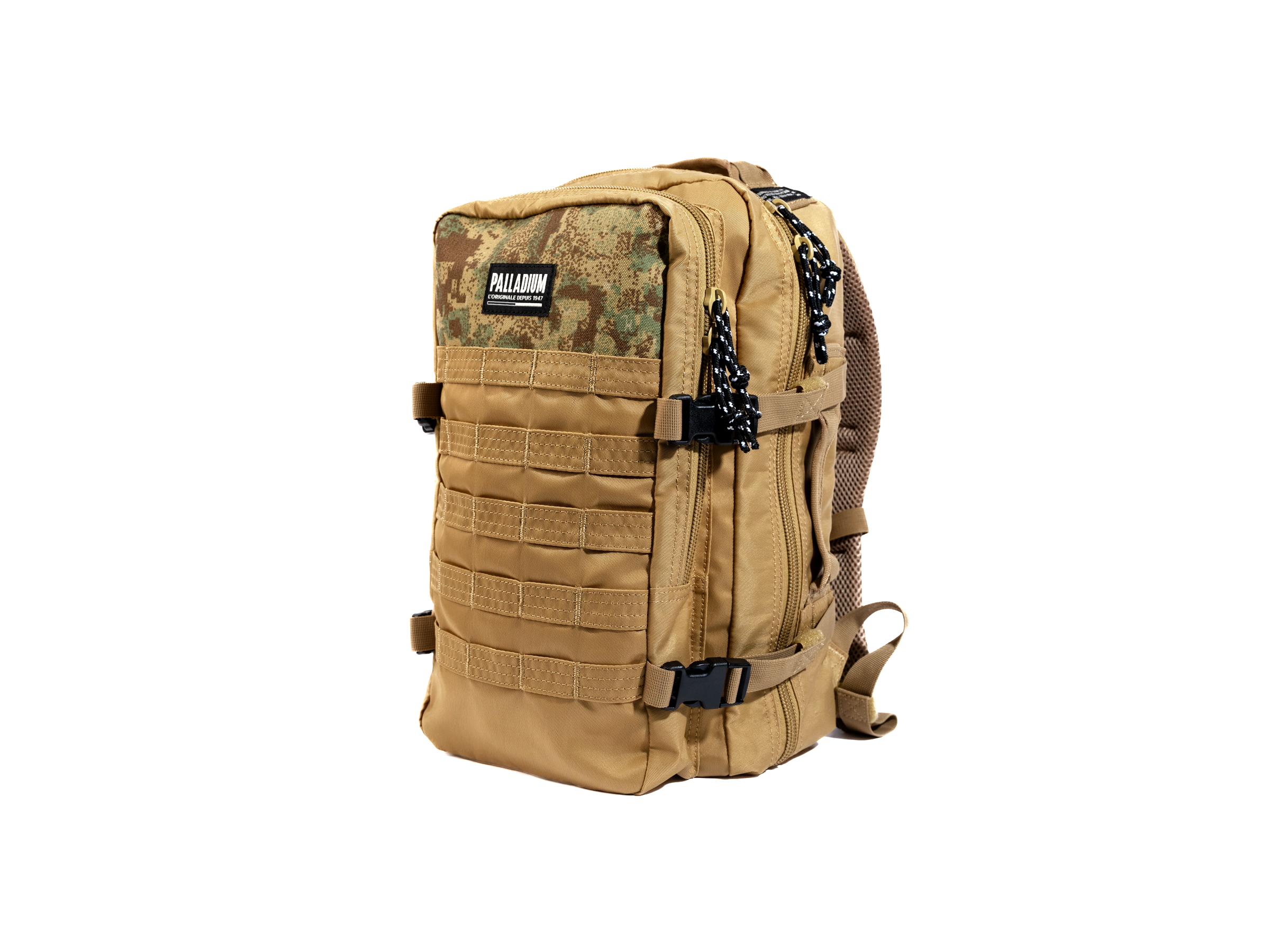 Featuring a new 25-liter volume, it offers ample space for your essentials. The back is equipped with a 3D mesh cushion for enhanced comfort during extended wear. Two zippered pockets include a dedicated compartment for your laptop on the back, while the front provides additional storage for day journey items. Adjustable shoulder straps and multiple shell fabric webbing ensure a secure and comfortable fit, adapting to your needs wherever the day takes you. A Palladium patch label on the front adds a touch of urban sophistication and authenticity. Perfect for navigating Parisian streets or embarking on urban adventures, the Baroudeur 25L Nylon Backpack from the Paris Capsule Collection is your reliable companion. Explore with confidence, knowing you have the durability and style of Palladium by your side